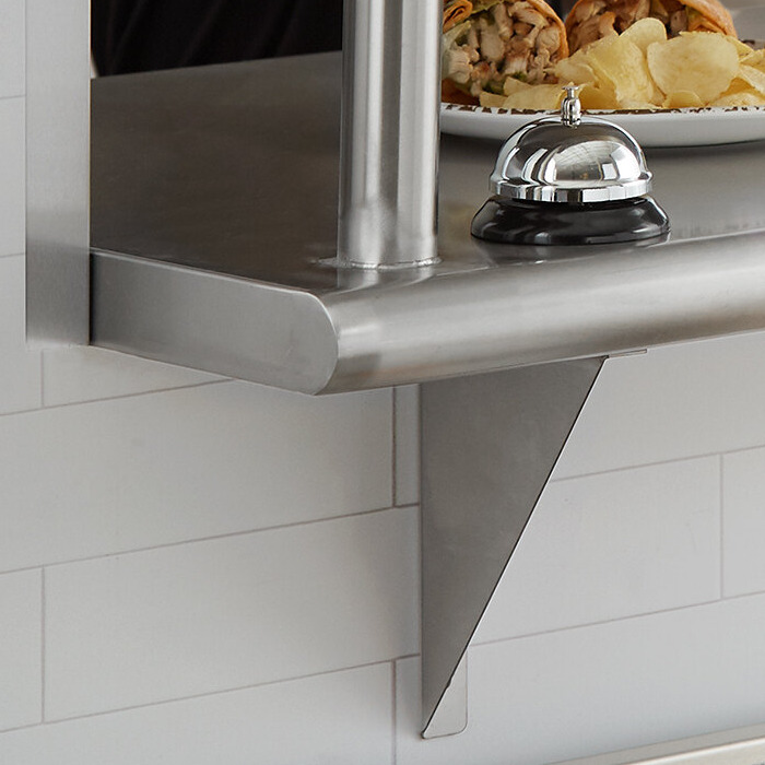 Because it is made of 16-gauge type 304 stainless steel, this shelf can be confidently installed in your kitchen without fear of rust or corrosion. It features 1 1/2" sanitary rolled front and back edges with square ends.