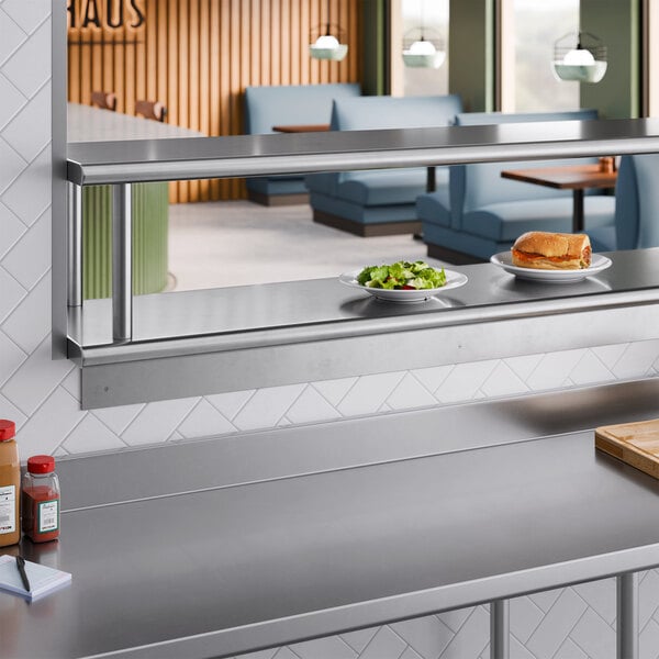 Since this shelf comes with both a pass-through shelf and an overshelf, it offers twice the amount of surface area. Its durable and reliable design makes it the perfect addition to your kitchen that's sure to enhance your workflow and assist your employees. The classic stainless steel finish and sleek design make it an excellent option for your restaurant, ensuring that it will blend in with any decor.