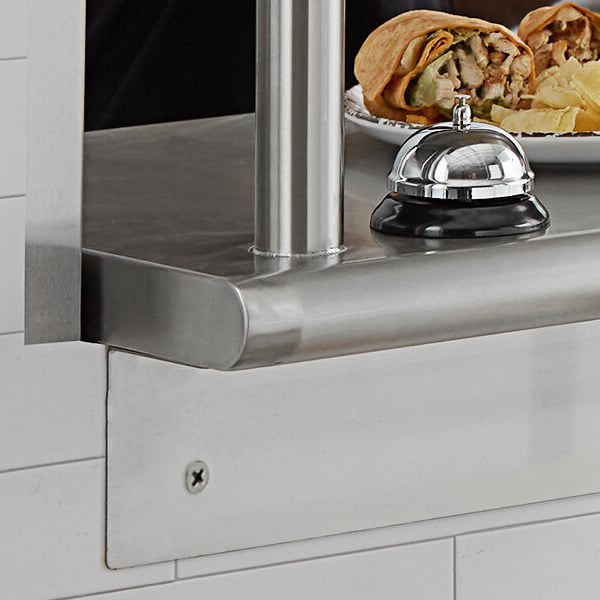 Because it is made of 16-gauge type 304 stainless steel, this shelf can be confidently installed in your kitchen without fear of rust or corrosion. It features 1 1/2" sanitary rolled front and back edges with square ends.