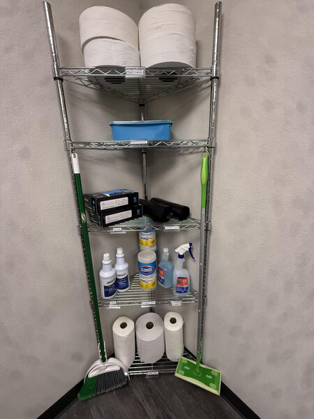 Looking to make the most of your storage space? This triangle shelf kit is a great way to increase storage capacity by using the space in a corner that would otherwise stand empty. This kit includes (5) wire shelves and (3) 74" posts, which allow you to create a convenient storage solution for the corner of your janitorial closet, warehouse, or stock room.