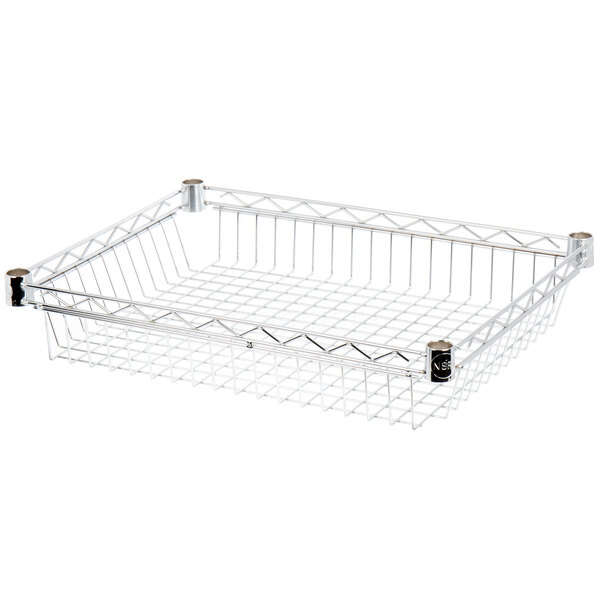 This Regency 18" wide chrome shelf basket is perfect for use in your restaurant, warehouse, or grocery store! Designed to fit onto your shelving unit in place of a traditional flat shelf, this shelf basket provides easy access to your items while keeping them securely in place. Plus, this shelf comes with four pairs of split sleeves that are used to attach the basket to its compatible posts and accessories for an easy setup.