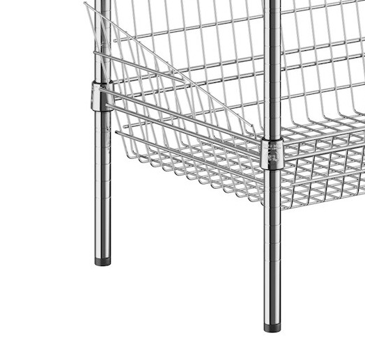 This unit features 4 storage display baskets with a drop front and sloped sides to help prevent your products from falling out. With an open wire design, these shelves ensure proper air flow around your stored supplies, products, or ingredients.