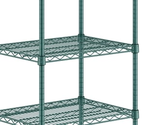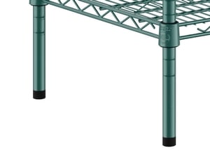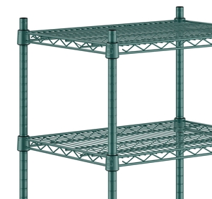 This kit boasts a green epoxy coated wire construction that works well in back-of-house storage and supply areas. Since it resists corrosion from humidity, this shelving unit is a great choice for walk-in coolers, storage rooms, or dish rooms. Its wire shelves do a great job of facilitating proper air flow around your stored supplies, helping to prolong the shelf life of food.