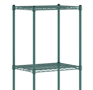 This Regency shelf kit will save space and help you organize storage areas in your restaurant, hotel, bar, or warehouse. Its durable green epoxy construction can stand up to your heaviest loads, and the epoxy coating allows you to use this kit in back-of-house dry storage areas or in damp areas like the warewashing room. This commercial-grade shelving unit makes for a reliable, long-lasting storage solution perfect for business applications.