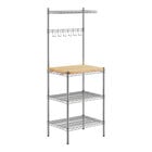 Trust this dependable Regency chrome baker's rack wire shelf with hardwood cutting board for all your prep and dry storage needs.