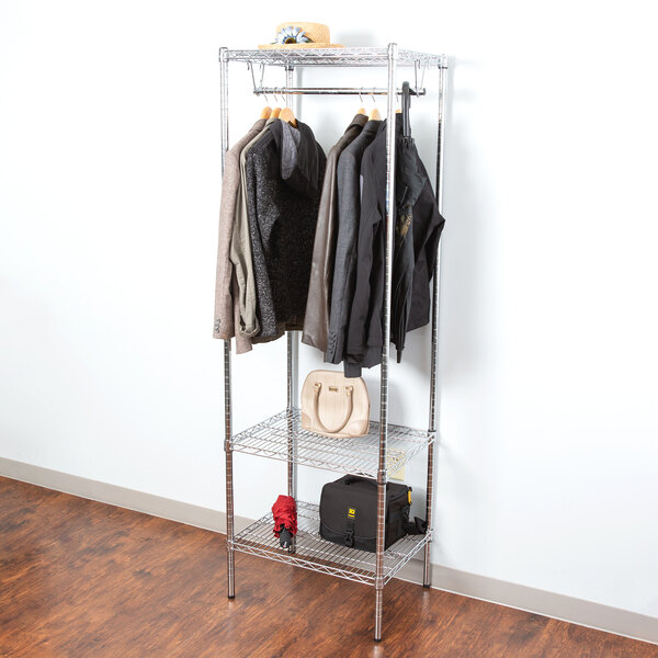 This Chrome Garment Rack was easy to assemble and it is very sturdy. We use it for our employees to hang their jackets and also for private events for people to use to hang their jackets. It is light enough to move from one room to another!