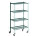 Regency 18" x 30" x 60" NSF Green Epoxy Mobile Wire Shelving Starter Kit with 4 Shelves