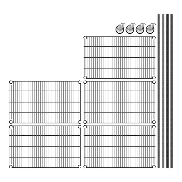 View All ItemsKeep your storage area organized with this Regency NSF black epoxy mobile wire shelving starter kit with 5 shelves!