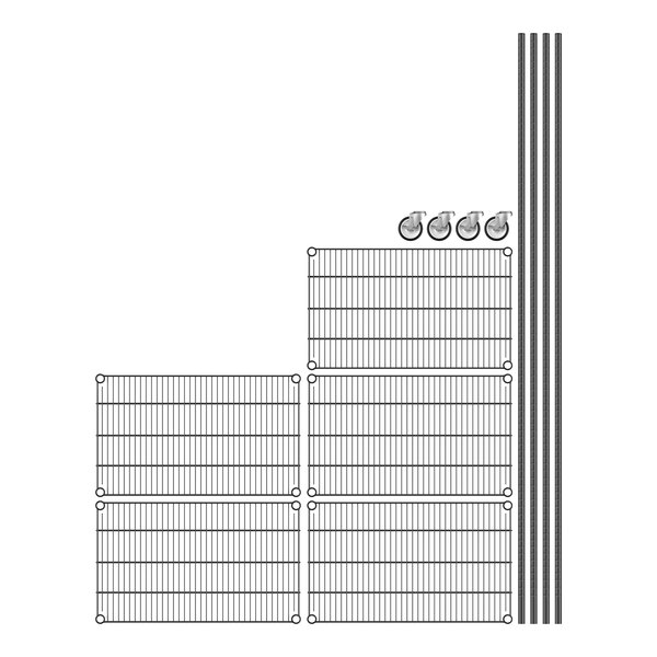 View All ItemsKeep your storage area organized with this Regency 18" wide NSF black epoxy mobile wire shelving starter kit with 5 shelves and 86" posts!