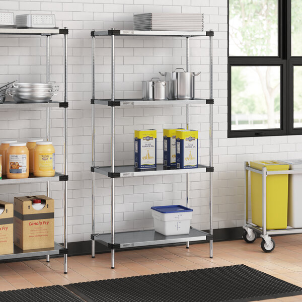 This reliable and versatile unit boasts a durable construction, allowing you to store your essential products with peace of mind. Plus, assembly is fast and easy, so you can start using the shelving unit quickly. Whether you're in a kitchen, retail, or industrial environment, this shelving unit is a reliable and efficient storage solution.