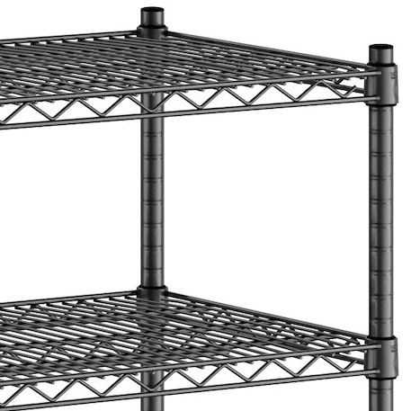 Each shelf features a wire construction, which allows for proper airflow around the stored supplies, products, or ingredients, and each shelf accommodates an ample amount of evenly distributed weight. For your convenience, the shelves are also adjustable and can be moved higher or lower along the posts.