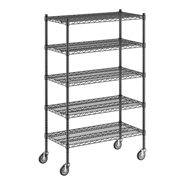The epoxy coating resists corrosion to ensure long-lasting use, and it is suitable for use in dry, humid, or moist environments, making the unit a multi-purpose investment that's sure to accommodate your ever-evolving needs. Because the coating is black, it's subtle and professional, perfect for office settings or for merchandising applications and front-of-house sales. Plus, the included 5" casters allow for quick access and easy cleaning, and the casters are equipped with brakes to secure the unit in place when needed.