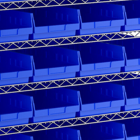 The included high-density, injection-molded shelf bins are designed to withstand the rigors of industrial environments, feature a highly durable polypropylene construction with reinforced edges, and are impervious to most chemicals.