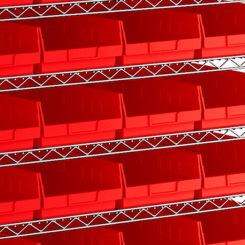 The included high-density, injection-molded shelf bins are designed to withstand the rigors of industrial environments, feature a highly durable polypropylene construction with reinforced edges, and are impervious to most chemicals.