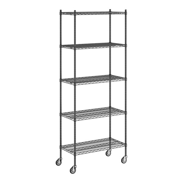 Regency 18" x 36" x 92" NSF Black Epoxy Mobile Wire Shelving Starter Kit with 5 Shelves