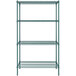 This Regency shelf kit will save space and help you organize storage areas in your restaurant, hotel, bar, or warehouse. Its durable green epoxy construction can stand up to your heaviest loads, and the epoxy coating allows you to use this kit in back-of-house dry storage areas or in damp areas like the warewashing room. This commercial-grade shelving unit makes for a reliable, long-lasting storage solution perfect for business applications.