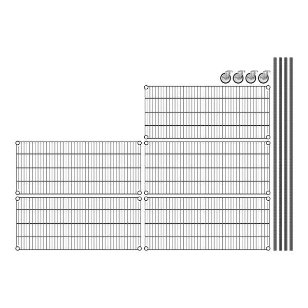 View All ItemsKeep your storage area organized with this Regency NSF black epoxy mobile wire shelving starter kit with 5 shelves!