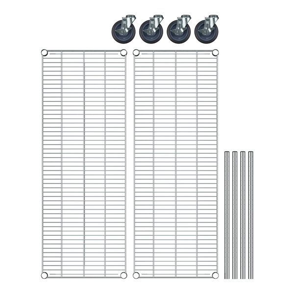 Regency Spec Line 18" x 48" x 33" NSF Stainless Steel Wire Mobile Shelving Starter Kit with 2 Shelves
