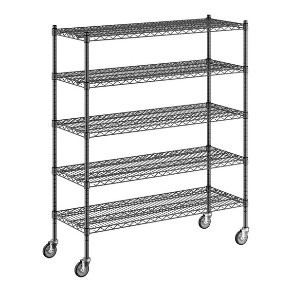 The epoxy coating resists corrosion to ensure long-lasting use, and it is suitable for use in dry, humid, or moist environments, making the unit a multi-purpose investment that's sure to accommodate your ever-evolving needs. Because the coating is black, it's subtle and professional, perfect for office settings or for merchandising applications and front-of-house sales. Plus, the included 5" casters allow for quick access and easy cleaning, and the casters are equipped with brakes to secure the unit in place when needed.