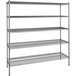 This kit includes (5) 18" wide wire shelves and (4) 64" posts, which allow you to create a convenient storage solution for your restaurant, hotel, bar, warehouse, or garage.