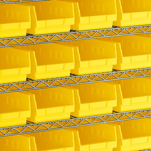 View All ItemsMaintain an organized industrial space with this Regency 18" x 60" x 74" wire shelving unit with 88 yellow bins.