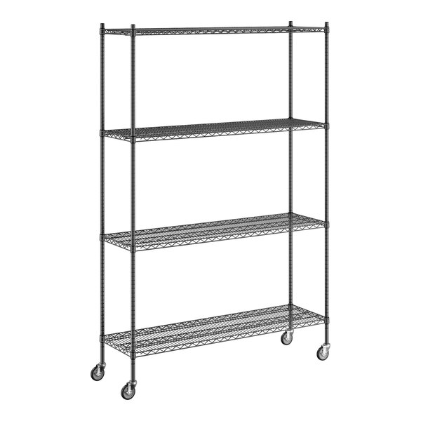 Regency 18" x 60" x 92" NSF Black Epoxy Mobile Wire Shelving Starter Kit with 4 Shelves