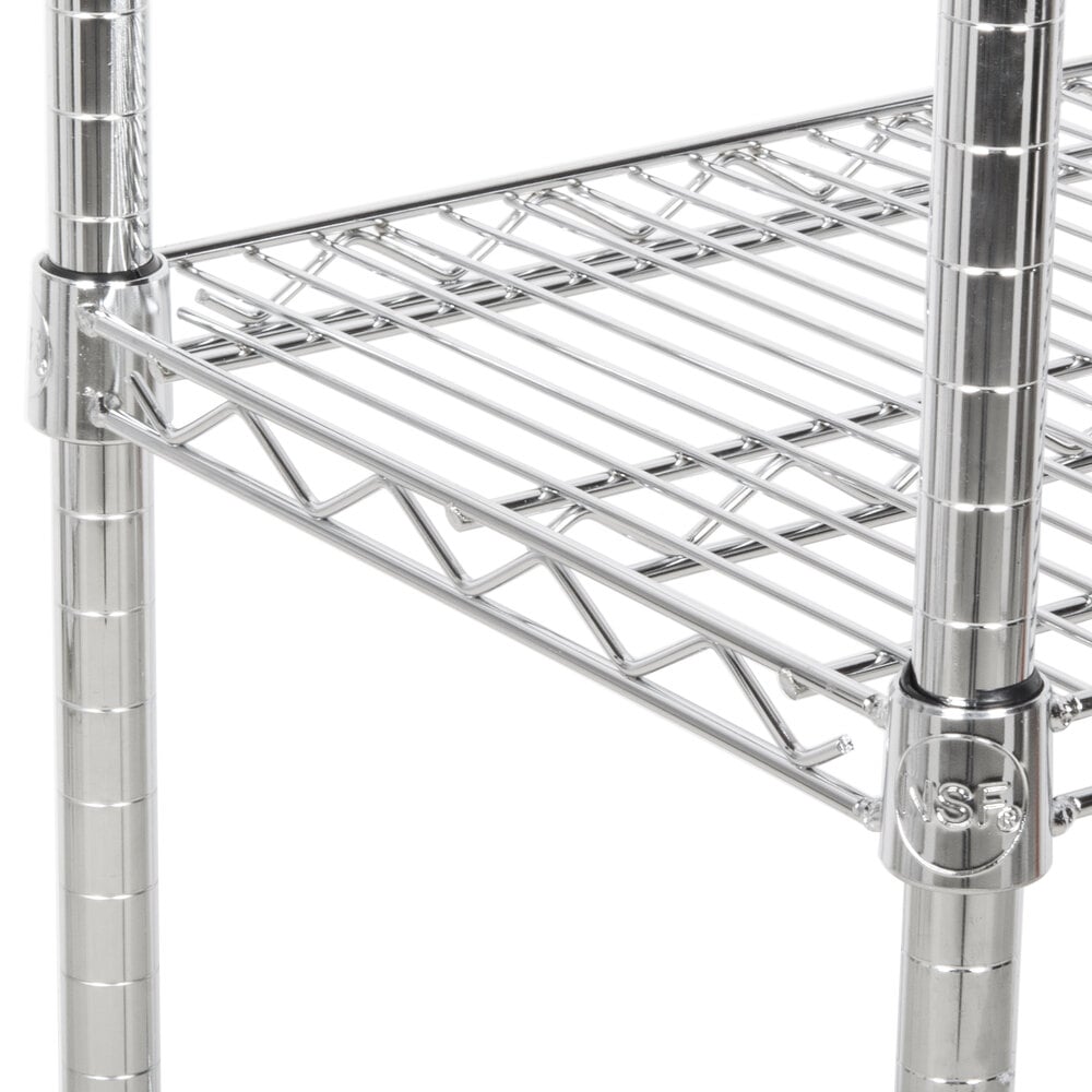 This kit boasts an attractive wire construction that works well in front-of-house merchandising as well as display spaces in your boutique, market, or other business venue. Its wire shelves also do a great job of facilitating proper air flow around your stored supplies, helping to prolong the shelf life of food. Since this shelving unit has a sleek chrome finish, it's the perfect choice for use in any dry storage or display environment.