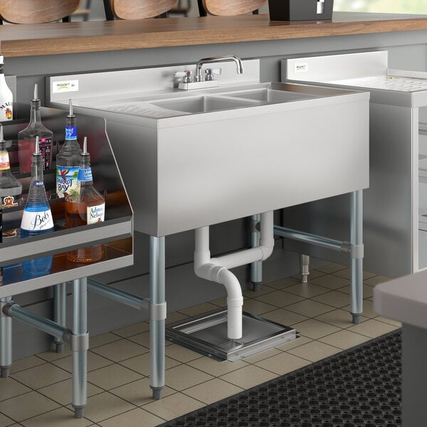 - Item #: 60b22136l9kRegency 2 Bowl Underbar Sink with Faucet and Left Drainboard - 36" x 21"
