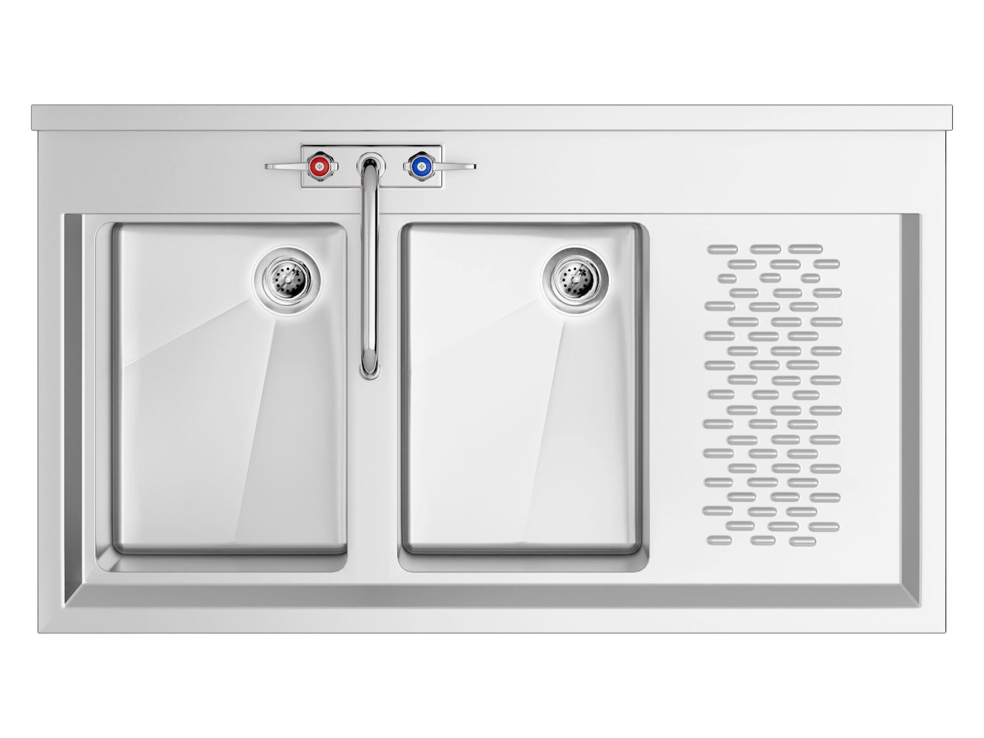 - 2 bowl underbar sink with right drainboard: