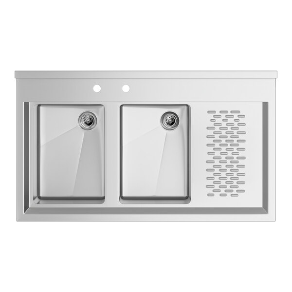This durable underbar sink from Regency is perfect for use behind your bar, providing your employees with a quick way to wash and dry barware in between tasks. With two bowls, barware can easily be separated in the washing process for increased flexibility during interruptions.