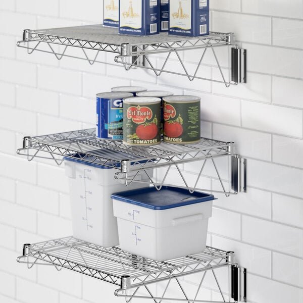 For reliable and convenient wall-mount storage, this Regency wire shelf is an excellent choice! Perfect for a variety of commercial applications, it features a stainless steel construction with a sleek chrome finish, making it suitable for dry environments.