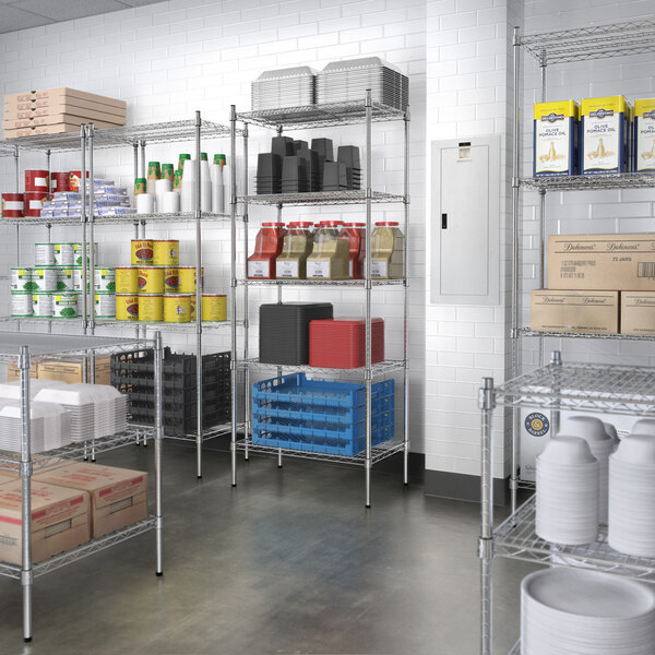 This Regency shelf kit will save space and help you organize storage areas in your restaurant, hotel, bar, or warehouse. Its durable chrome construction can stand up to your heaviest loads. This commercial-grade shelving unit is constructed of durable chrome. As a result, it makes for a reliable storage solution that's perfect for business applications.