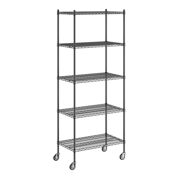 Regency 21" x 36" x 92" NSF Black Epoxy Mobile Wire Shelving Starter Kit with 5 Shelves