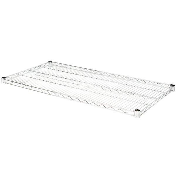 This Regency 21” wide NSF Listed chrome wire shelf is a great storage option for your low- to medium-volume needs. Connect this shelf to its compatible leg posts (sold separately) to create the ultimate shelving unit. Use this shelf to organize a variety of items, including canned goods, bulk ingredients, food boxes, retail items, and small kitchen appliances. Plus, it can be placed in almost any merchandising area, pantry, closet, or warehouse.