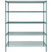 This Regency shelf kit will save space and help you organize storage areas in your restaurant, hotel, bar, or warehouse. Its durable green epoxy construction can stand up to your heaviest loads, and the epoxy coating allows you to use this kit in back-of-house dry storage areas or in damp areas like the warewashing room. This commercial-grade shelving unit makes for a reliable, long-lasting storage solution perfect for business applications.