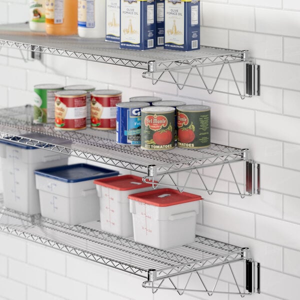 This Regency stainless steel wall-mount wire shelf provides convenience, durability, and space-efficient storage.