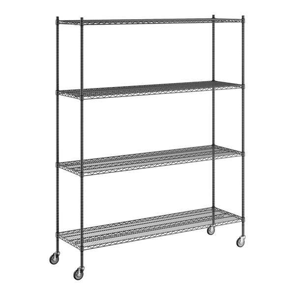 Regency 21" x 72" x 92" NSF Black Epoxy Mobile Wire Shelving Starter Kit with 4 Shelves