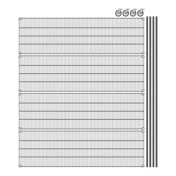 View All ItemsKeep your storage area organized with this Regency 21" NSF black epoxy mobile wire shelving starter kit with 4 shelves!