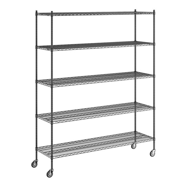 Regency 21" x 72" x 92" NSF Black Epoxy Mobile Wire Shelving Starter Kit with 5 Shelves