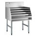 An excellent addition behind virtually any bar, this liquor display rack effectively boosts your bartender's efficiency while offering customers a glimpse of of your liquor selection! This rack's bottom, back, sides, hat channel, and steps are made of 18 gauge type 304 stainless steel that not only make it a durable addition to your bar setup, but also one that is extremely simple to clean.