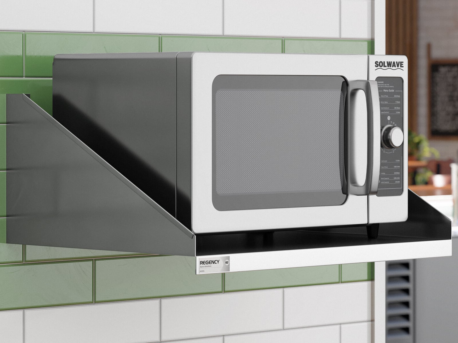 With the Regency stainless steel microwave shelf, you’ll be able to keep your commercial microwave within easy reach without taking up your valuable counter space. It’s also more space efficient than a microwave cart or stand, which can be bulky and block walking areas in your kitchen. Made with durable stainless steel, you can be sure your microwave is secure and steady when you use this shelf.