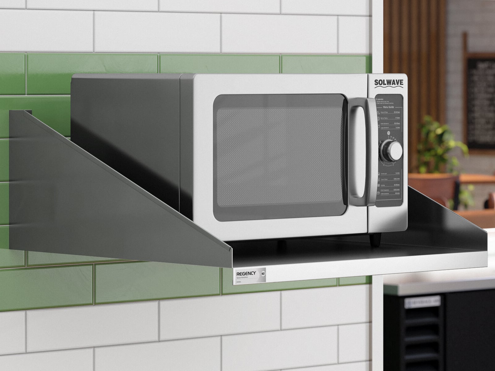 With the Regency stainless steel microwave shelf, you’ll be able to keep your commercial microwave within easy reach without taking up your valuable counter space. It’s also more space efficient than a microwave cart or stand, which can be bulky and block walking areas in your kitchen. Made with durable stainless steel, you can be sure your microwave is secure and steady when you use this shelf.