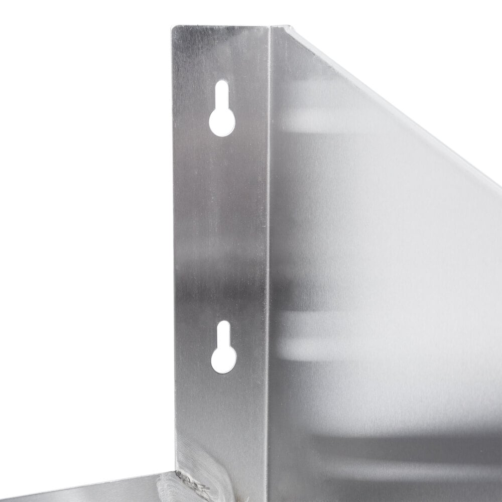 For extra stability, this shelf has welded support brackets. Simply attach them to the wall for a reliable storage option over your prep area, stove, sink, or other area of your kitchen (installation hardware sold separately).