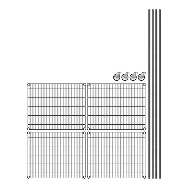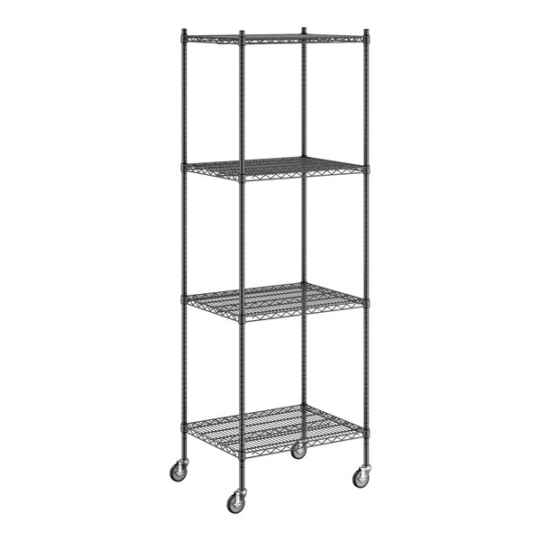 View All ItemsKeep your storage area organized with this Regency 24" NSF black epoxy mobile wire shelving starter kit with 4 shelves!