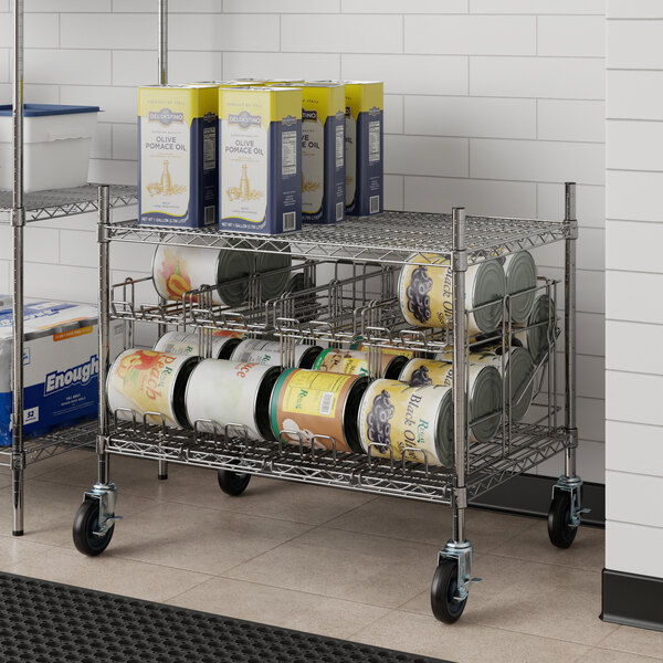 View All ItemsBoost efficiency and maximize storage space with this Regency 24" x 36" chrome wire shelf kit with 4 can racks and 27" posts!
