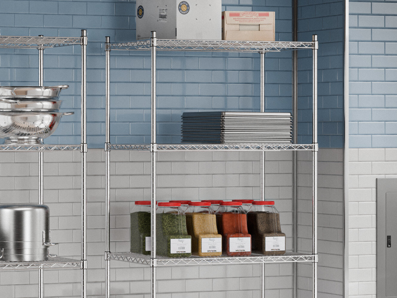 This commercial-grade shelving unit boasts a durable chrome construction. As a result, it makes for a reliable, long-lasting storage solution that's sure to provide your business with years of service.
