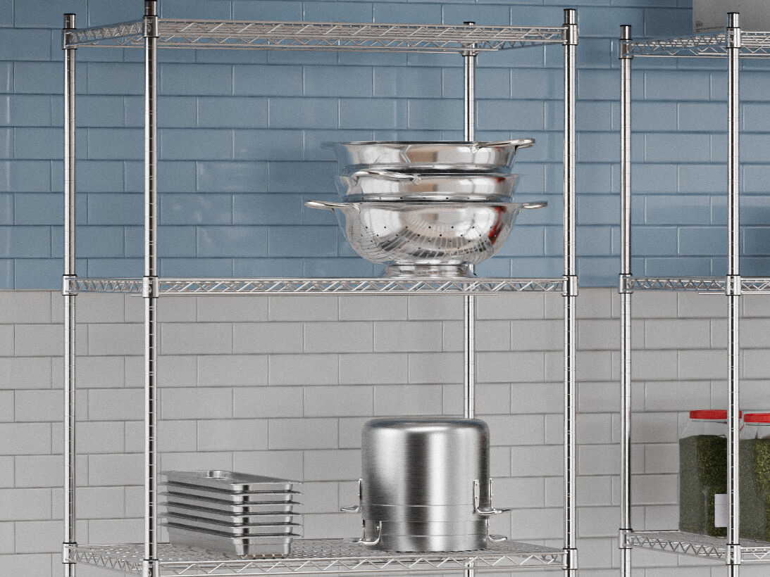 This Regency chrome shelve is great for our kitchen. It holds a lot of things. very sturdy and well made. The price was great and such a great value for the money. Highly recommend this brand.