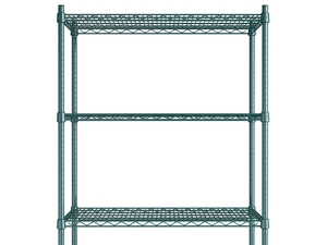 This kit boasts a green epoxy coated wire construction that works well in back-of-house storage and supply areas. Since it resists corrosion from humidity, this shelving unit is a great choice for walk-in coolers, storage rooms, or dish rooms. Its wire shelves do a great job of facilitating proper air flow around your stored supplies, helping to prolong the shelf life of food.