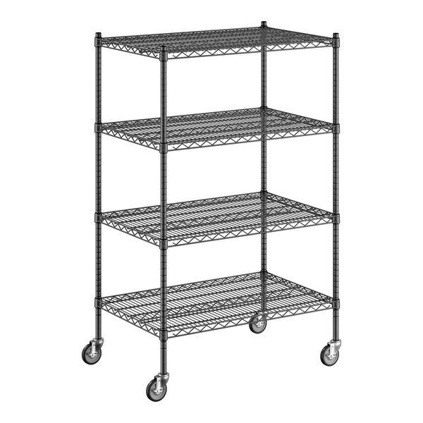 Regency 24" x 36" x 60" NSF Black Epoxy Mobile Wire Shelving Starter Kit with 4 Shelves