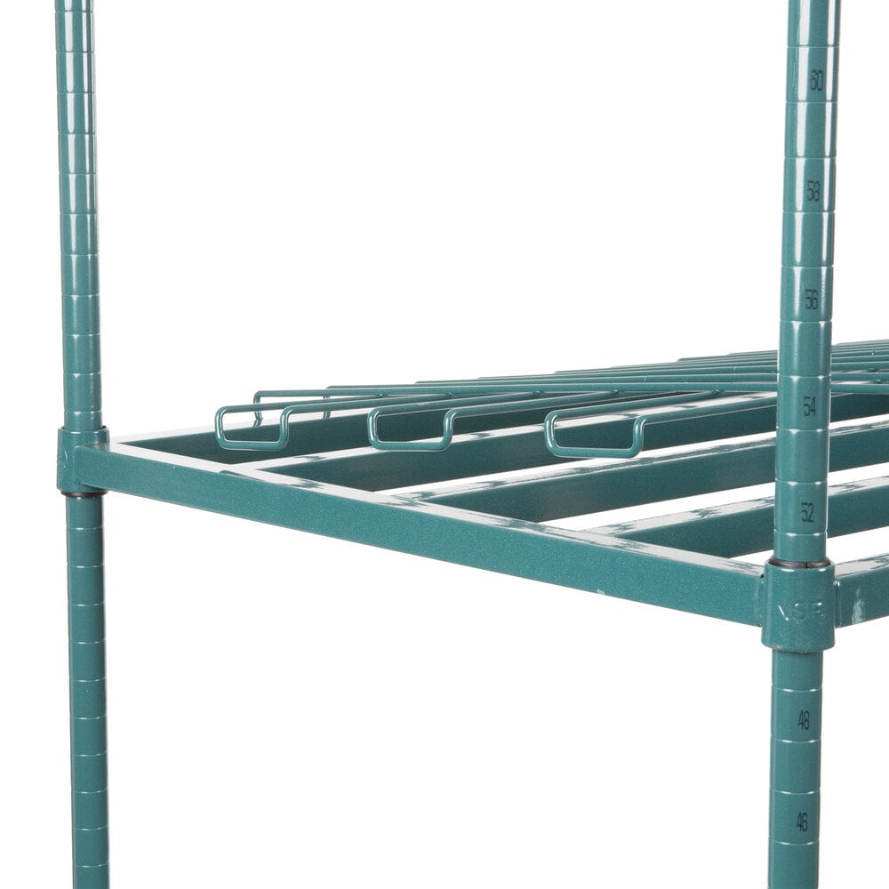 These shelves are heavy duty but they are a NIGHTMARE to put together. Ater snapping on the clips, you lower a shelf down on top of them but it, and the four legs, have to be perfectly even and upright otherwise the shelves easily just push the clips down. I need 3 people to put these together.